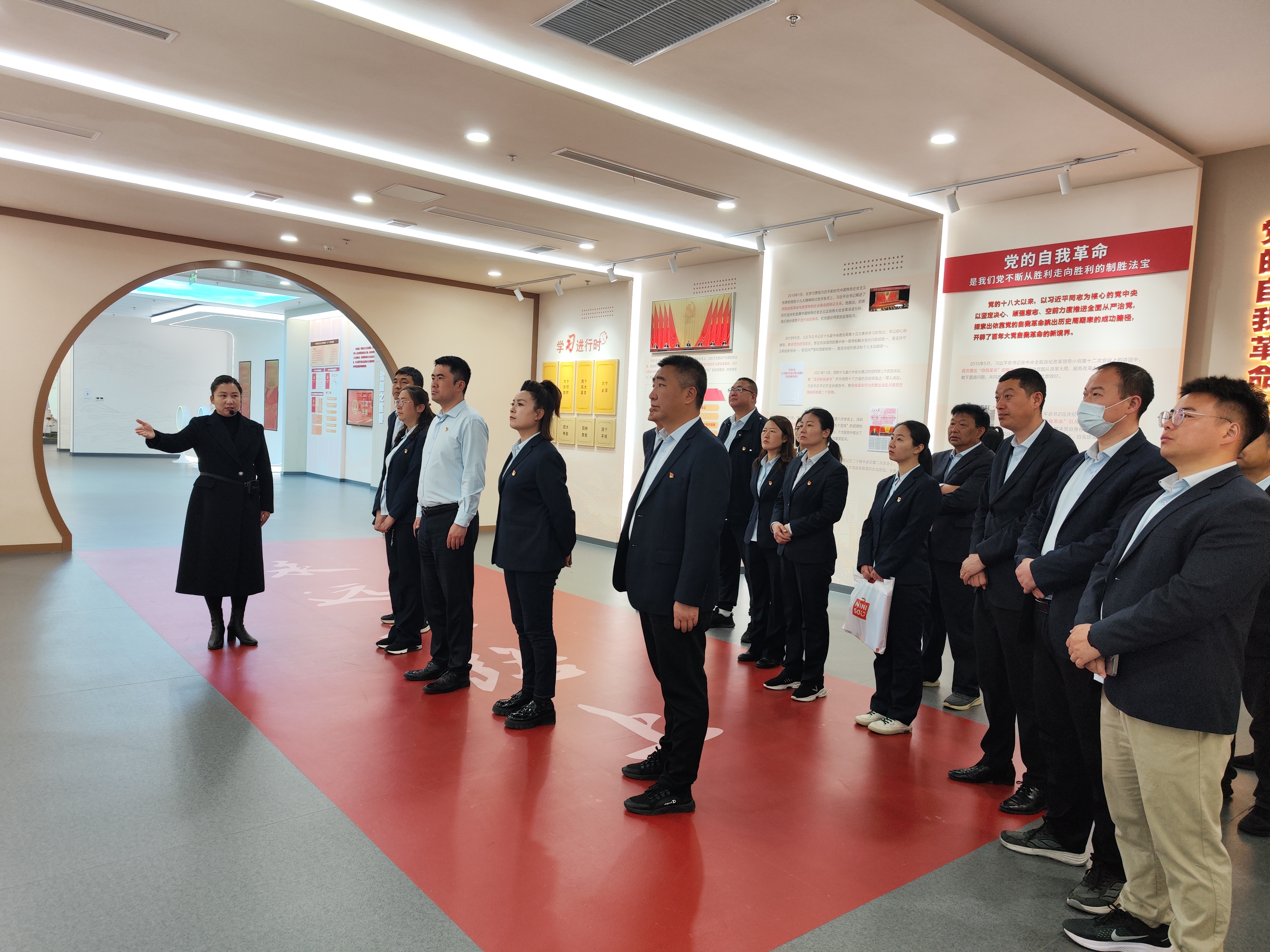 “黨的自我革命永遠(yuǎn)在路上!”跟隨講解,系統(tǒng)回顧《紀(jì)律處分條例》的修訂歷程,從“從嚴(yán)治黨”到“全面從嚴(yán)”,從“制度籠子”到“體系革新”,一條清晰的紀(jì)律建設(shè)道路,成為黨員干部“知敬畏、存戒懼、守底線”的行動(dòng)自覺。展墻前,眾人重溫入黨誓詞,鏗鏘誓言與《條例》原文共鳴,彰顯“初心如磐”。