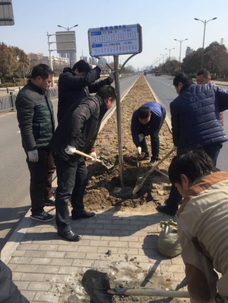 在樹立站牌過程中,大家分工明確,挖坑、填土、清理等工作一氣呵成,充分展現了東部公交全體干群同心同德、吃苦耐勞的優良品質!