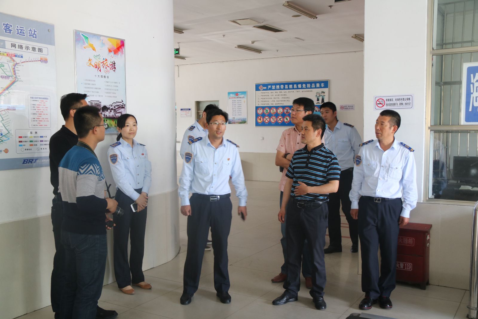 市交通局運管處領導來到海州客運站檢查公交創文工作
