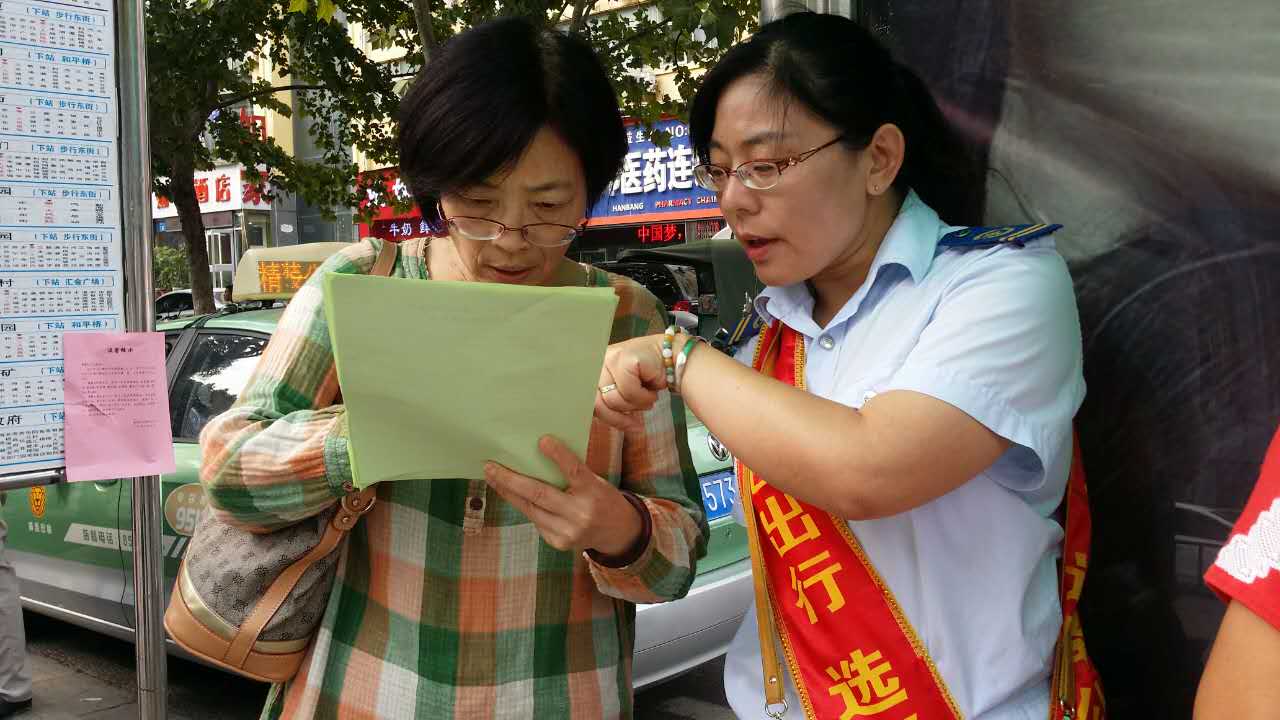 公交集團(tuán)組織40名工作人員統(tǒng)一服裝,佩戴綬帶,在以上站點現(xiàn)場為市民發(fā)放公交出行指南3000份,2017年“公交出行宣傳周”倡議書2000份,乘客滿意度調(diào)查表1500份。