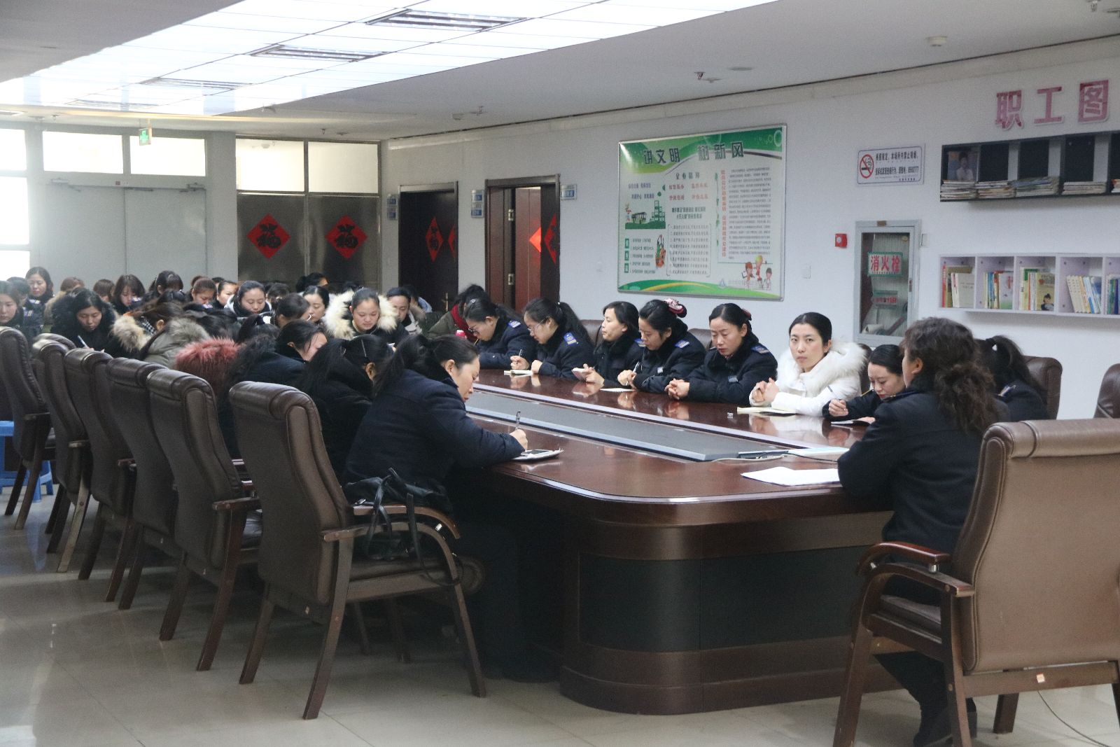 為做好冬季站臺(tái)管理,確保乘客站內(nèi)安全候車,提高站務(wù)員文明服務(wù)和安全意識(shí)。12月20日,公交集團(tuán)快速公司在海州客運(yùn)站四樓會(huì)議室召開冬季站務(wù)員“文明安全、優(yōu)質(zhì)服務(wù)”會(huì)議,共145名站務(wù)員參加,快速公交站務(wù)副經(jīng)理王淑琳主持會(huì)議。