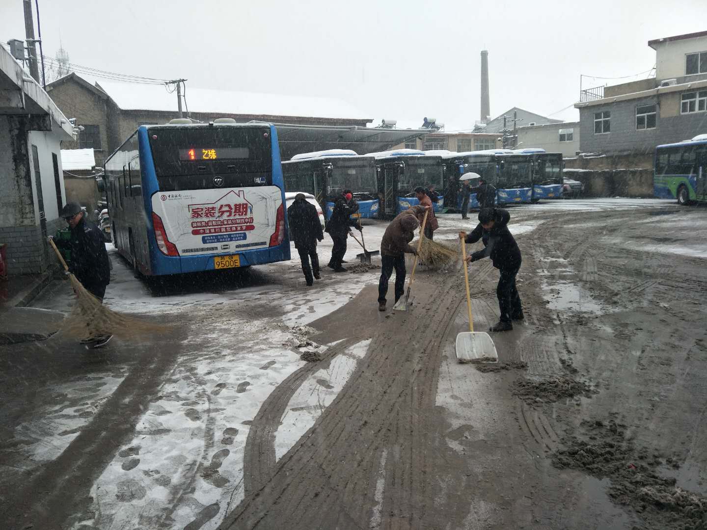 為保證全市公交線路首班車按時準(zhǔn)點(diǎn)出發(fā),公交集團(tuán)生產(chǎn)運(yùn)營人員全員出發(fā),提前到崗,清掃公交場站內(nèi)外積雪,為公交車的出行提供便利。