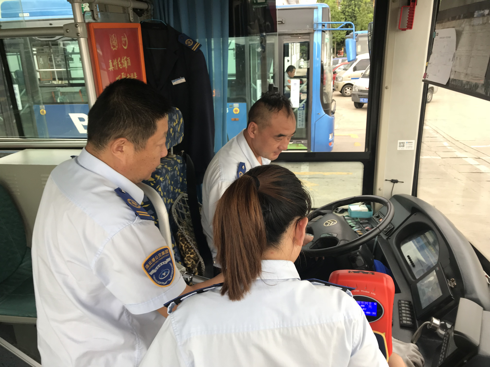 在西門首末站內(nèi),公交集團海通公交公司六分公司副經(jīng)理孫海棠正帶領(lǐng)人員緊鑼密鼓的忙著游1路調(diào)車工作,孫海棠表示:游1路新車調(diào)換前期準備工作已基本完成,車內(nèi)服務(wù)標識、清掃工具、提示標語等已全部張貼到位,車輛衛(wèi)生全部打掃完畢,但由于車內(nèi)未安裝下車鈴、遮陽板、內(nèi)后視鏡,給駕駛員安全駕駛及乘客下車帶來諸多不便。對此,寧濘表示:將及時與汽車服務(wù)公司人員對接溝通,盡快予以協(xié)調(diào)解決。同時,六公司也要全面做好車輛更新后線路運營調(diào)度工作,確保車輛安全運營、駕駛員優(yōu)質(zhì)服務(wù)。