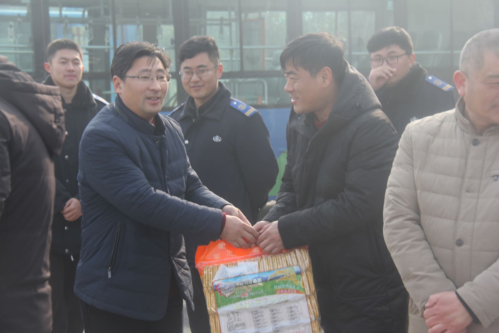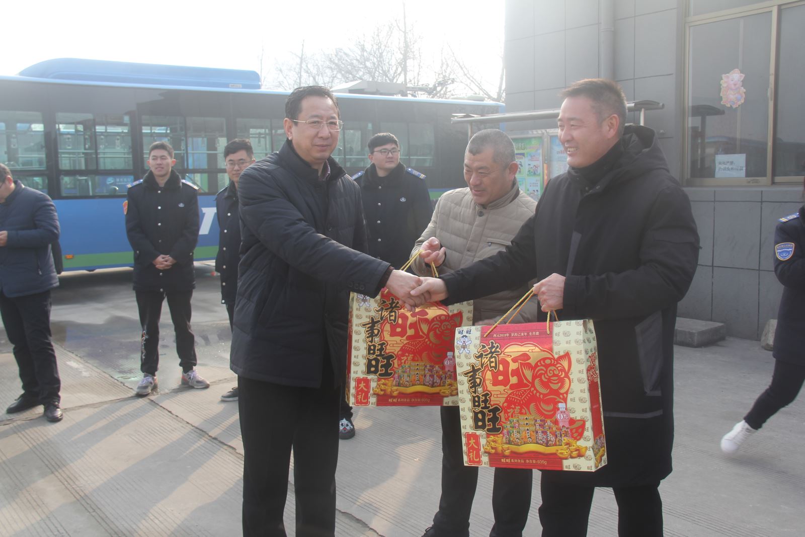 劉佃華一行走訪了大港路停車場、大浦保養廠、西城公交總站、海州客運站、華威停車場、BRT凌州廣場站,慰問了公交集團公交事業一部、快速公交事業部、公交事業二部、經營發展事業部、機務技術事業部的公交職工。每到一處,劉佃華都與春節假期堅守在工作崗位的干部職工親切握手,說聲“過年好”,感謝他們在春節期間為保障廣大乘客出行所作出的努力,并為他們送上新春大禮包表達新春的祝福。