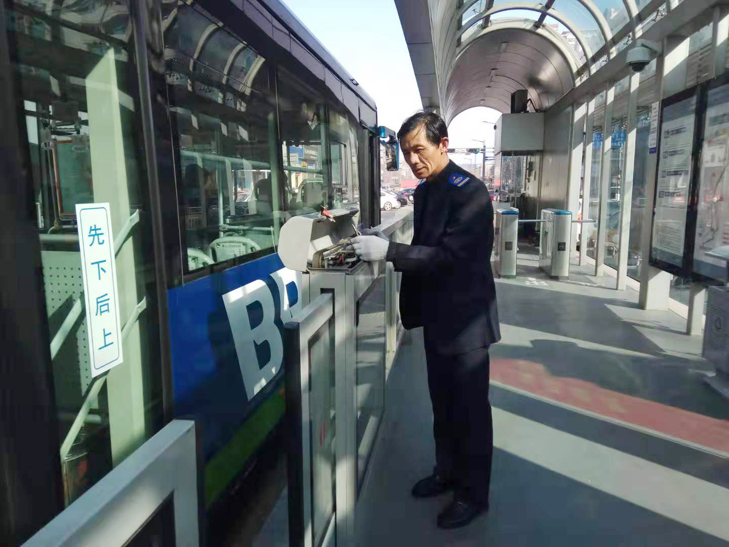 在公交集團(tuán)快速公交事業(yè)部東城分公司有一個(gè)人,他深受站務(wù)員的歡迎與喜歡,他就是站臺維修員尹德軍,他對工作認(rèn)真負(fù)責(zé)的態(tài)度,對單位無私奉獻(xiàn)的精神卻讓人欽佩不已。