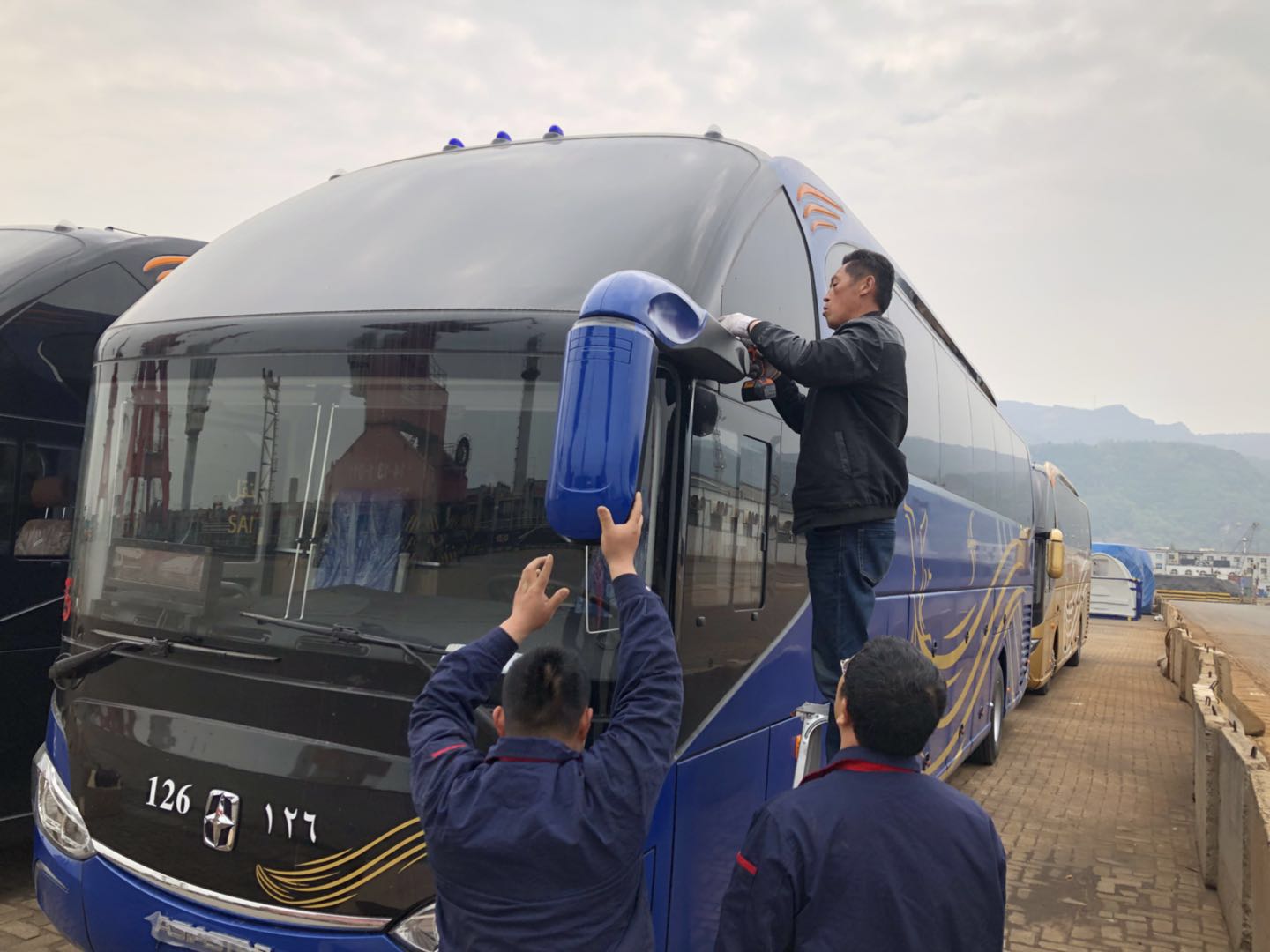 5月21日早上5點鐘,一行18人的突擊隊趁著朝陽升起前準時出發奔赴港口,為完成任務爭取時間,中午,大家放棄午休,連軸作業,保質保量按時交付車輛,在大家的共同努力下直到5月26日凌晨4點多終于完成了255臺高檔車裝船前的整備工作,5月26日晚上7點,車輛順利裝船離港。此項任務的如期完成也受到了外商及宇通客車廠家還有亞星客車廠家的高度評價。