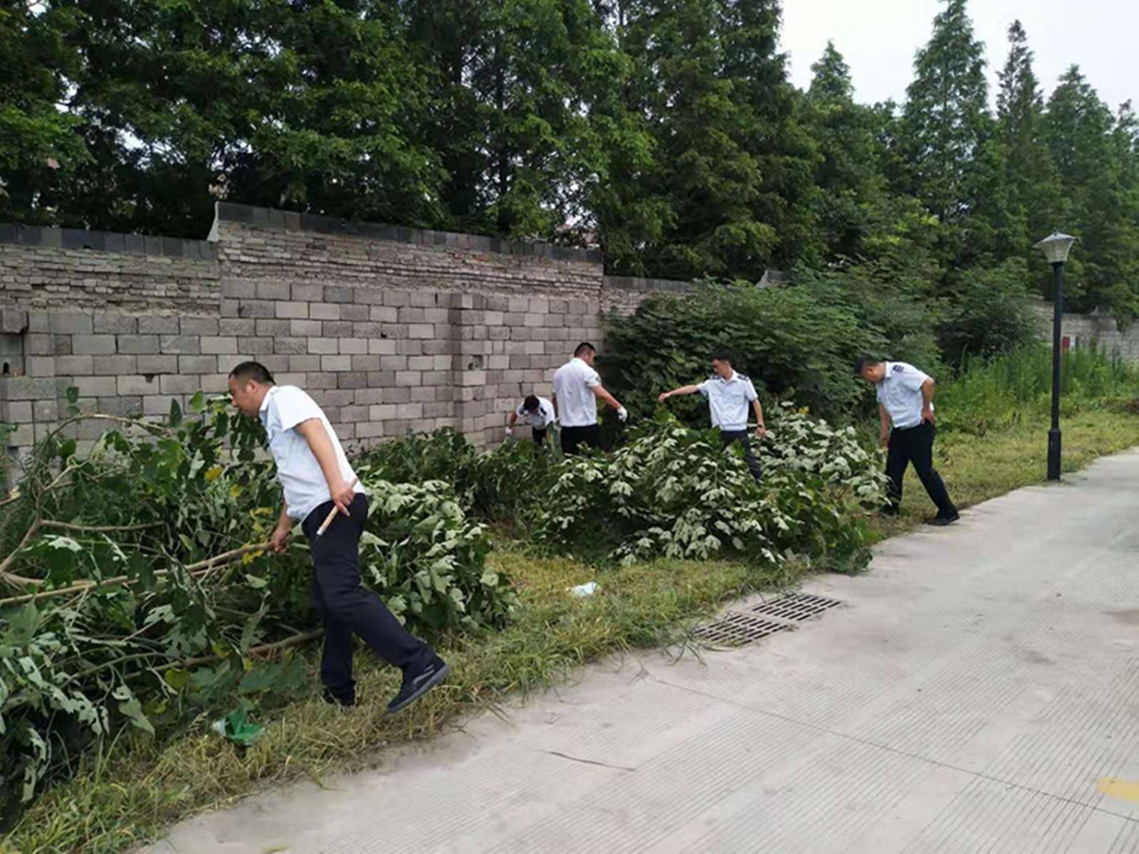清理過程中,公交集團經(jīng)營發(fā)展事業(yè)部管理人員充分發(fā)揚不怕臟、不怕累的精神,大家挽起衣袖,脫掉鞋襪,用鐵锨鏟、掃帚掃、耙子鏤,臟活累活搶著干。幾十米的院墻邊潮濕狹窄,且雜草叢生,蚊蟲多,難以下腳。分公司經(jīng)理沖在最前面,遇到坑洼出直接用手把垃圾一點一點掏出來,最后用除草劑對院墻邊集中消毒、除草。