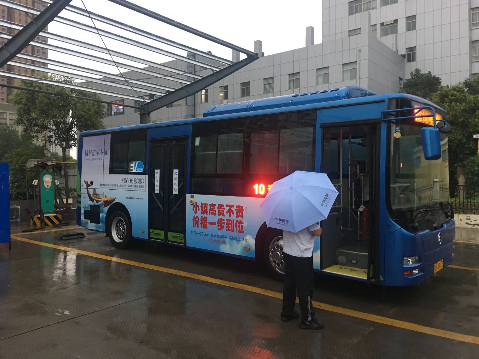 8月1日下午14時,一場大雨伴隨著閃電不約而至,雨點大而急,短短十分鐘多條道路出現積水,這對公交車輛安全運行是很大的考驗。