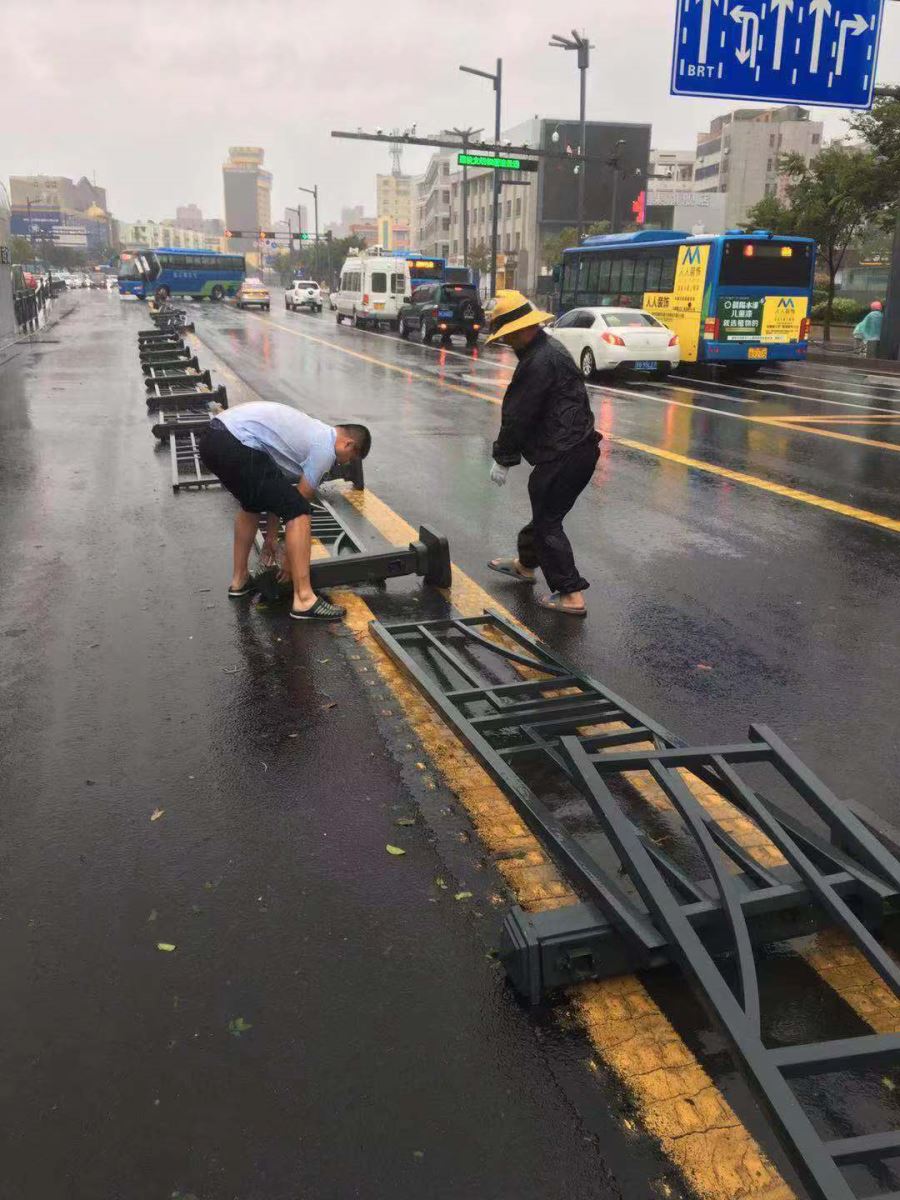8月10日起,公交集團各事業部按照集團文件精神,做好了防臺風專項部署工作,安管人員實行24小時輪流值班制度,連夜布點防控10處;11日凌晨4時起,臺風登陸后,全體駕駛員、調度員、安管人員提前到達崗位,做好發車前面對面交代、車輛安全檢查等準備工作,保證車輛準點發出。各事業部還派出由管理人員組成勘路小分隊分別到23條途經涵洞、易積水路段現場查看情況,狂風暴雨濕透了他們的衣裳,卻沒有阻擋他們前進的腳步。經判斷,道路積水深度達30厘米及以上的線路,勘路小分隊的成員們立即聯系調度人員采取車輛繞道或減班、停班運營、調配應急物資等方式做好現場指揮應急工作,確保臺風天氣市民乘客安全出行。