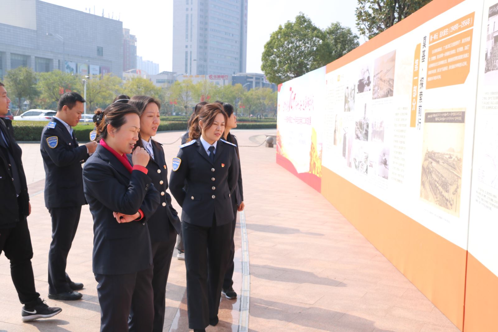 參觀結束后,全體黨員前往市政府廣場前,繼續參觀“逐夢大港70載揚帆奮進新時代” —慶祝新中國成立七十周年連云港港口口岸成就展,展覽共分為“序幕·大港開篇”、“奠基·探索前行”、“啟航·大港初顯”“騰飛·奮進新時代”4個篇章,展線長度200余米,展出展板115塊,圖片、文件照片280余張,全面展現了新中國成立70年來,特別是黨的十八大以來所取得的重大成就。