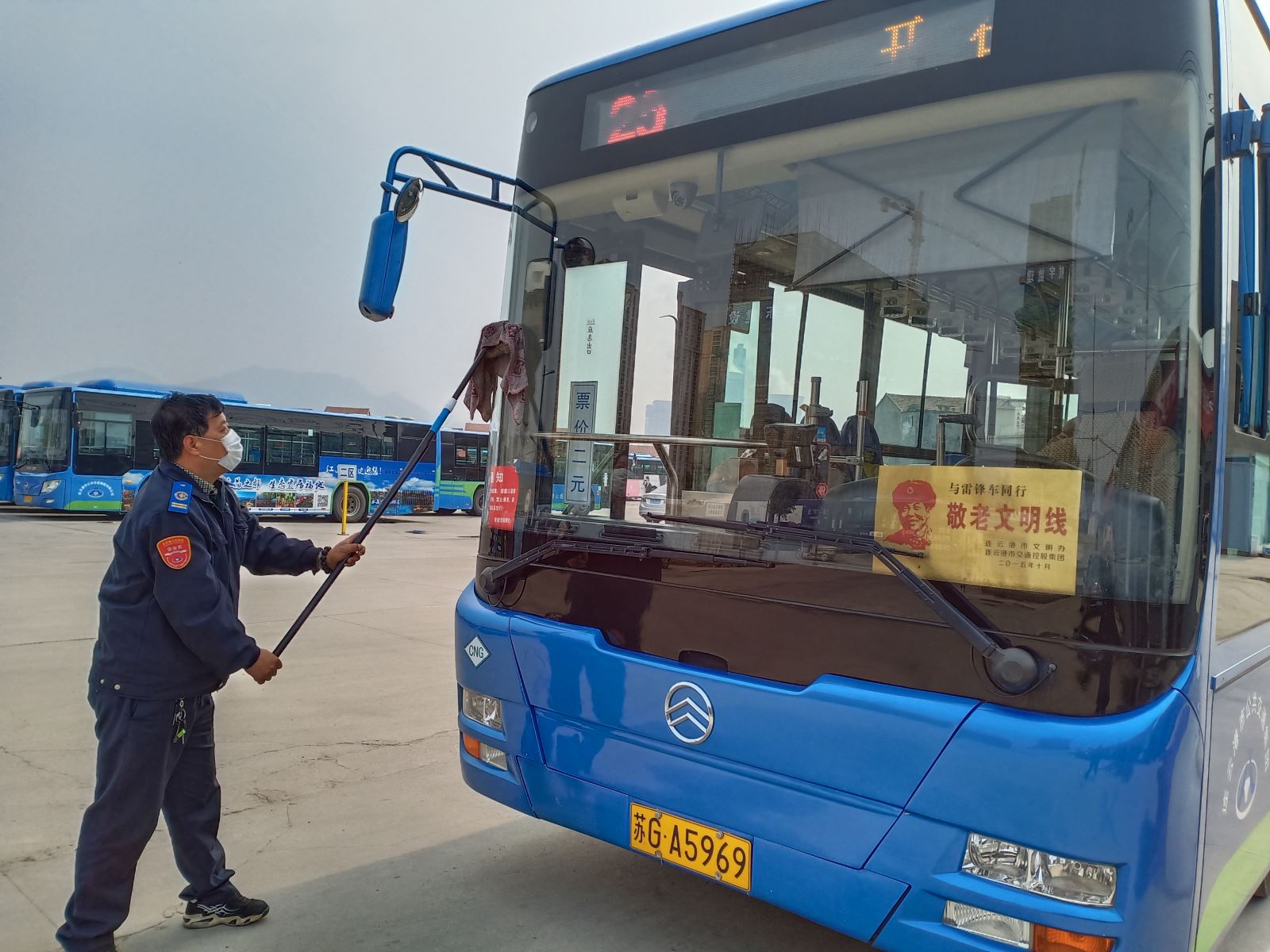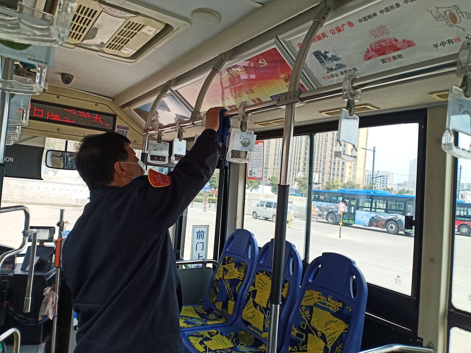 4月11日,下了一上午的雨終于停了,雨一停歇,事業一部的駕駛員師傅們紛紛忙著清洗車輛,營造整潔的車廂環境。現場,駕駛員自覺在洗車機旁依次排隊等待,緩慢通過洗車機,將車輛外部的泥土、灰塵清洗干凈。外部衛生清潔干凈后又拿起抹布將車內進行衛生檢查清理,嚴格按照公司制定的“六凈一亮”標準,主要對駕駛員區域、車廂內的扶手、廣告展板、座位椅、車廂地板、前后門塌板等死角處進行擦拭清理。清潔車廂的同時,用配比好的消毒液對車輛進行全面消毒,切斷新冠肺炎傳播的途經,降低乘客交叉感染的風險。
